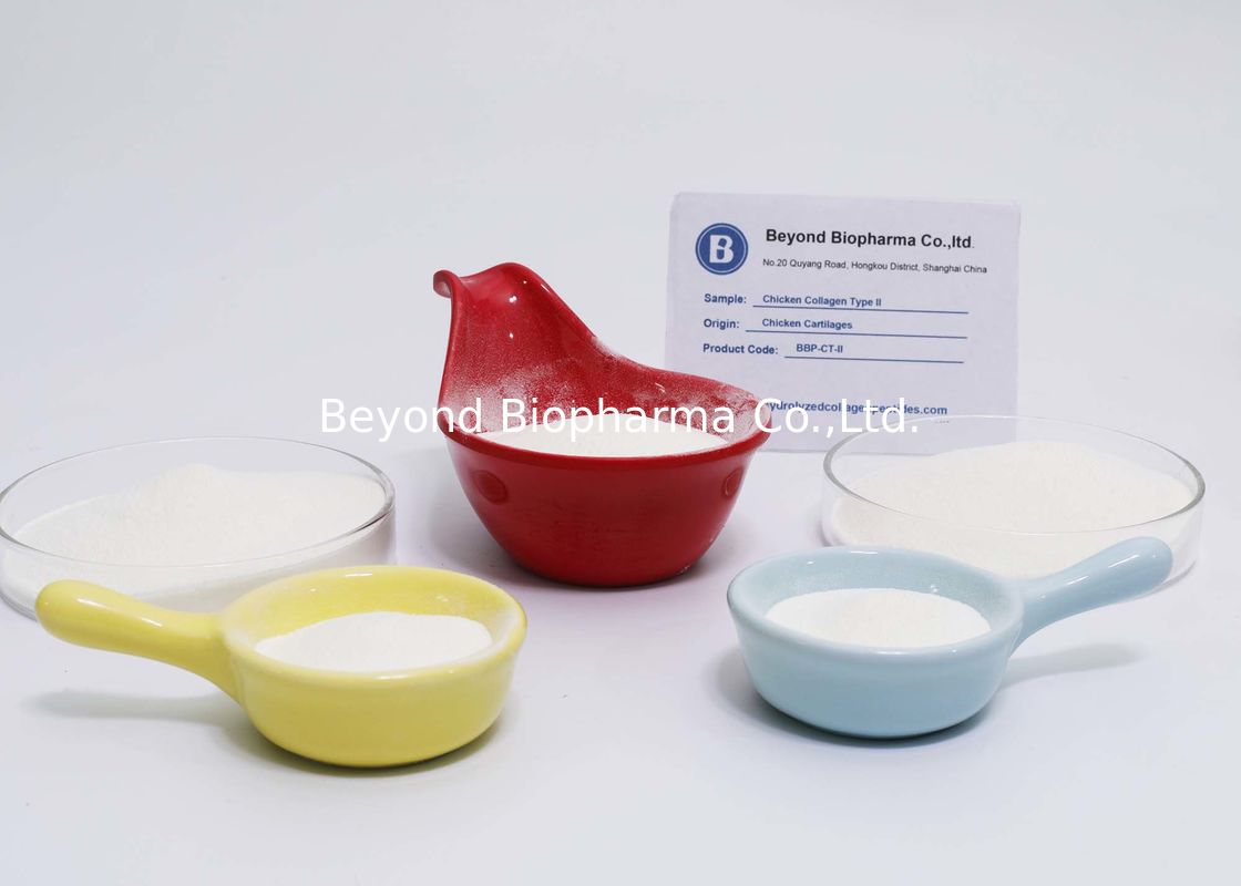 Como fabricante de tipo colágeno de ii, nosotros más allá de Biopharma no sólo capaz de suministrar el colágeno del pollo en forma del polvo, pero también en forma granular. El colágeno granulado tiene una buena fluidez para poderlo producir fácilmente en bebidas sólidas en bolsitas o latas. Tipo - el colágeno de 2 pollos se puede también comprimir fácilmente en las tabletas o llenar en cápsulas.